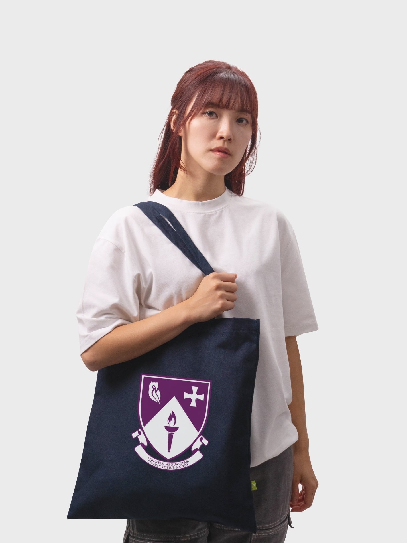 Some things are effortless. A cotton tote you can fold, carry, or sling over your shoulder with ease. It goes from lectures to late runs to the library, carrying more than just books - it carries your college name.