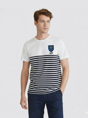 A new term calls for a fresh chapter and this striped tee brings that feeling to life. Inspired by the heritage of our coastlines, it pairs a crisp block upper panel with classic Breton stripes for a look that feels timeless, adventurous, and unmistakably collegiate. Lightweight, breathable, and cut for everyday ease, it’s the kind of staple you reach for without thinking.