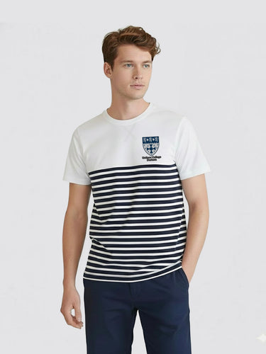 A new term calls for a fresh chapter and this striped tee brings that feeling to life. Inspired by the heritage of our coastlines, it pairs a crisp block upper panel with classic Breton stripes for a look that feels timeless, adventurous, and unmistakably collegiate. Lightweight, breathable, and cut for everyday ease, it’s the kind of staple you reach for without thinking.
