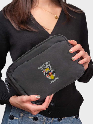Chaos belongs to the outside world. Inside this bag, everything has its place - cables, toiletries, the small essentials that make your day flow. Crafted from regenerated fabric and finished with your crest.