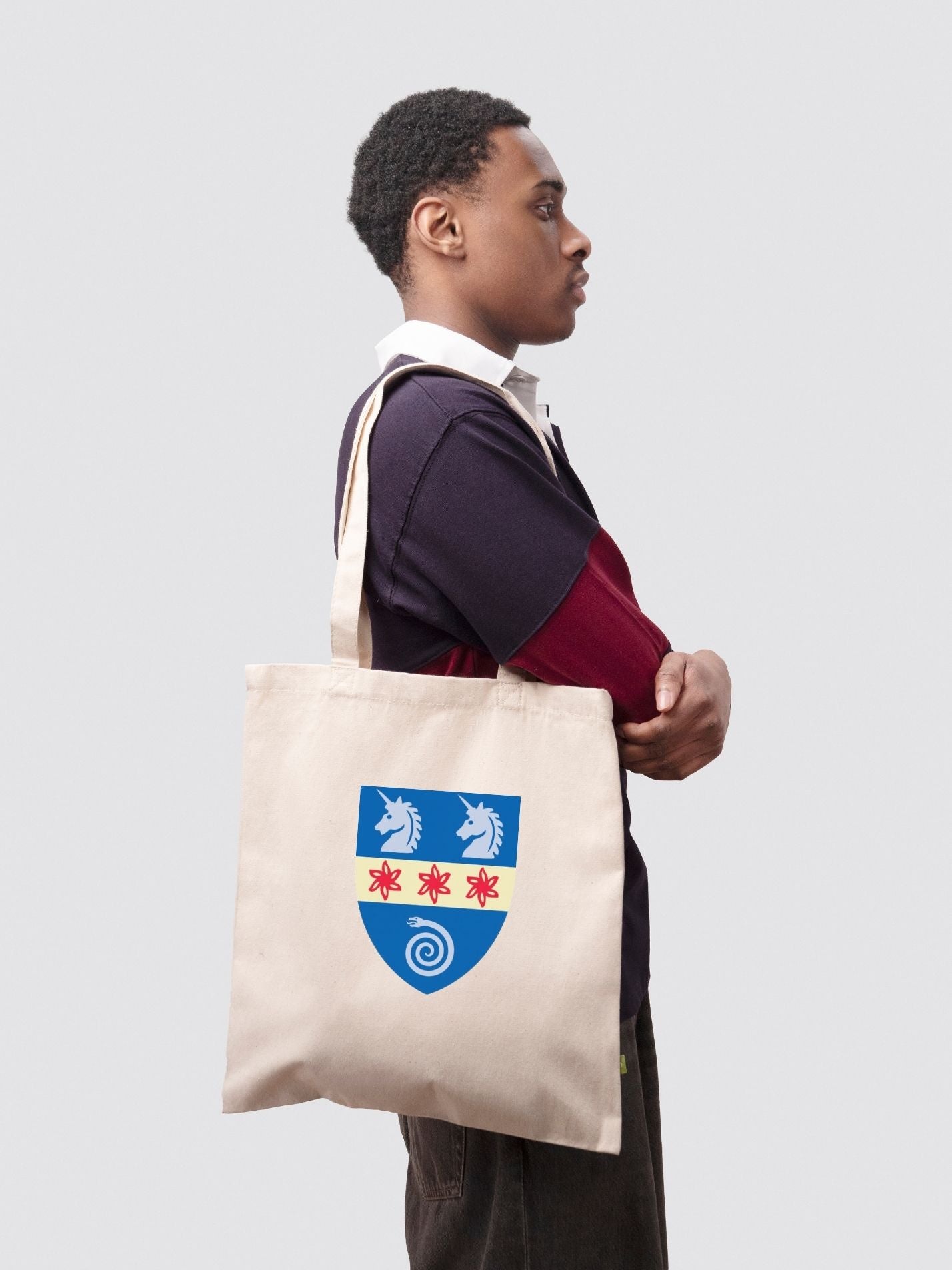 Some things are effortless. A cotton tote you can fold, carry, or sling over your shoulder with ease. It goes from lectures to late runs to the library, carrying more than just books - it carries your college name.